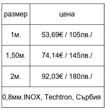 | Размер | 1 метър | 1,5 метрa | 2 метрa |